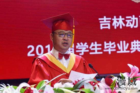 我不舍的是你们即将离开母校的怀抱,你们从五湖四海汇聚吉林动画学院,为母校增添了生机和活力,现在你们将带着“吉动精神”为国家文化产业发展带去“吉动力量”;我不舍的是你们即将离开母校的臂膀,面对未来,你们将要独自披荆斩棘,承担传承中华民族优秀传统文化、繁荣国家文化产业发展的责任和使命,创造自己的人生和国家民族的未来!