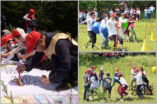 寻宝结束后,为激发大家潜能并高效融入团队,吉林省教育实业集团股份有限公司、吉林动画学院、吉动文化艺术集团的同事们分组开始了紧张刺激的拓展训练。解手链、背夹球、珠行万里……在城市里呆得久了的同事们,开始居然有些不适应。但我们可是一个team,属于团队的默契怎么能少。没多久,大家就玩儿开了,全员齐动,活力无限,打破了现场陌生同事间的隔阂和拘谨,改变了工作中的常规心态和惯性思维,大家超预期完成任务,打造最强team,释放团队激情~!