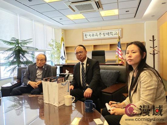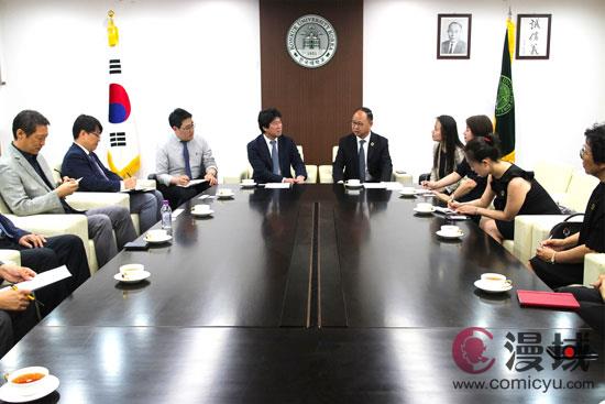 7月8日,考察团到访了韩国建国大学,校长闵相基、国际处处长金东恩、艺术设计学院院长李弼河、韩国建国大学中国研究院院长韩仁熙、国际交流合作科主任郑雨泳等一行亲切接待。吉林动画学院与韩国建国大学建立校际合作关系已经有12年,此次双方就影视人才培养,电影专业教师交流互访,联合举办国际论坛展赛,开展两校学生冬、夏令营,联合创作影视作品,以及推动影视艺人经纪等方面进行了深入探讨,并达成了合作意向。