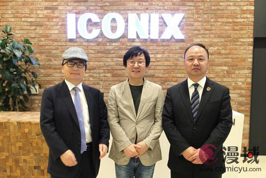 ▲吉林动画学院董事长、校长郑立国、韩国ICONIX动画公司董事长崔钟日、具钟祥亲切会面