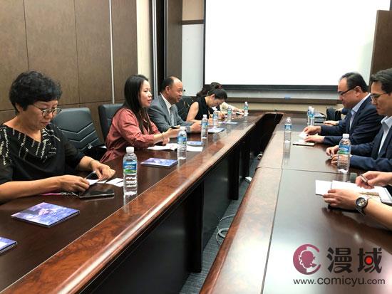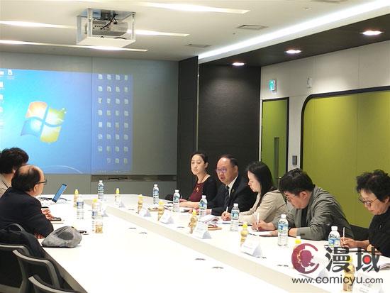 7月12日下午,考察团到访了韩国Samhwa Networks公司,公司社长安在宪等接待了考察团。双方就影视产品创作交流了经验,并就未来合作交换了意见。
