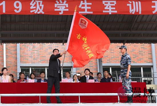 最后,吉林动画学院党委书记、督导专员张炬向军训团授予吉林动画学院军训团团旗,吉林动画学院2019新生军训正式开始。