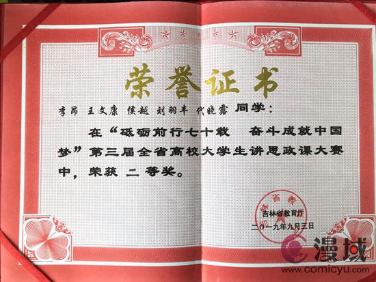 为深入学习贯彻全国教育大会、全国高校思想政治工作会议、全国学校思想政治理论课教师座谈会精神,庆祝中华人民共和国成立70周年,检验展示全省高校思政课“自学自讲 师生同上一堂课”教学改革成果,由省教育厅高校思想政治工作处、高等教育处指导,吉林农业大学承办的“砥砺前行七十载 奋斗成就中国梦”第三届全省高校大学生讲思政课复赛于2019年9月2日拉开帷幕。吉林动画学院斩获了团队二等奖和优秀组织奖。