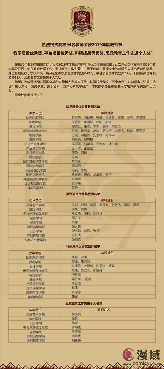 【表彰奖励】吉林动画学院关于2019年度教师节教师表彰奖励的决定