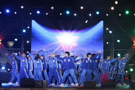 夜幕降临,华灯初上。伴随着青春激荡的乐曲,由大学生艺术团表演的舞蹈《致青春》拉开了晚会帷幕。