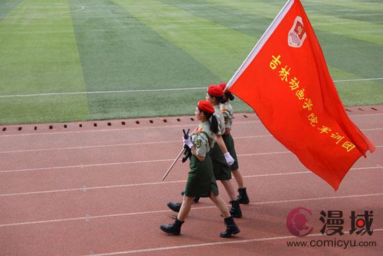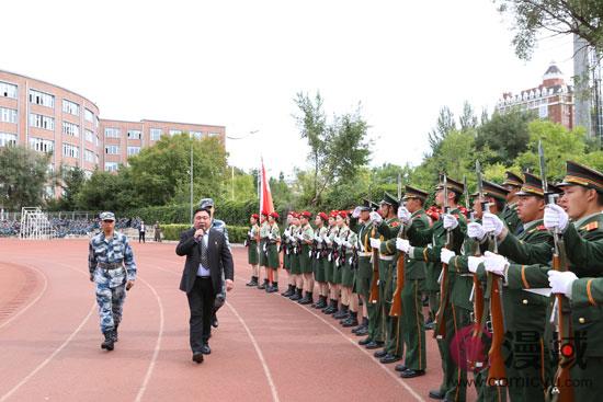在庄严的升旗仪式和激昂的国歌声中,活动正式开始。吉林动画学院党委书记、督导专员张炬在中国人民解放军93246部队曹庆伟参谋的陪同下检阅了新生军训队伍。