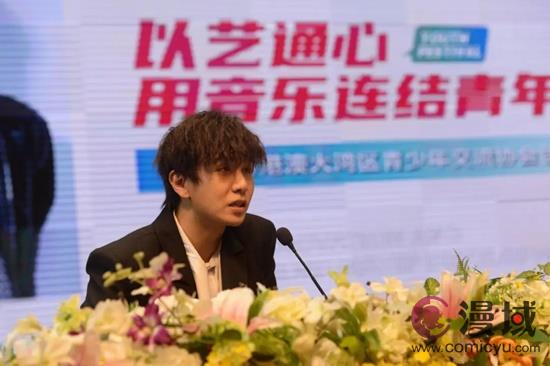 粤港澳大湾区青少年交流协会创会主席江阳做题为《以艺通心,用音乐连接青年情谊》的演讲
