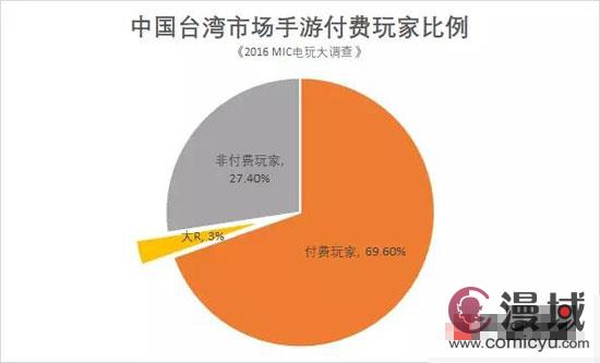 但作为智能机高度普及的市场,中国台湾付费比例健康,全部游戏人口只有27.4%的非付费玩家。大R的比例也不错,根据《2016 MIC电玩大调查》数据显示,中国台湾每月在游戏上花费5000新台币(约合人民币1114元)以上的手游玩家占到总玩家数的3%。但据行业人士透露,中国台湾市场也在逐渐像大陆一样,有资源过于向头部聚拢的迹象。