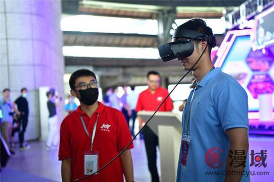 图为2020年8月15日,一名电竞爱好者在北京国际电竞创新发展大会展区体验虚拟现实技术在电竞领域的新应用、新产品。新华社记者张漫子摄