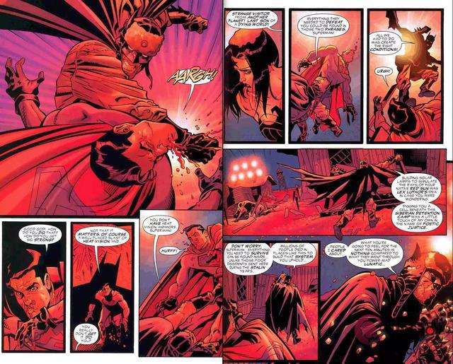 不义联盟这部漫画基于游戏改编,整个就是在讲超蝙对决,足足五年。超人是统治者阵营的领袖,蝙蝠侠是反抗者阵营领袖。