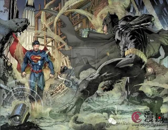 背景:蝙蝠侠受到卢瑟的蛊惑,对超人产生猜忌,拿着卢瑟给的氪石召唤超人,而超人也不开始怀疑蝙蝠侠的立场,正是由于两人互相的不信任,引发了大战。(由于漫画里并没有说清楚,所以只代表个人的看法)