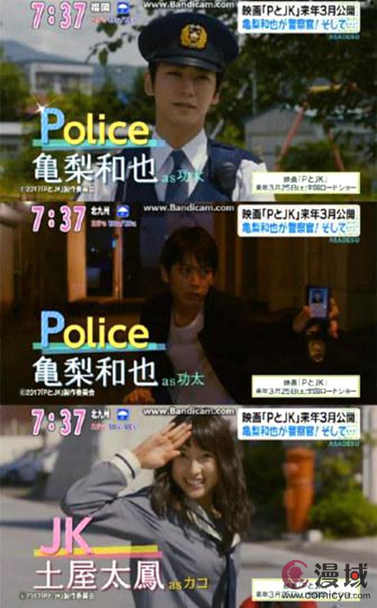 电影的漫画原作《P和JK》讲述的是高一女生歌子被朋友三门邀请,以“22岁”女子的身份参加了成年人的联谊,并和功太相遇了。之后两人互相产生了好感,但在得知歌子是高中生之后,功太就突然改变了态度,并扬长而去了。歌子和身穿警察服的功太再遇,但功太对歌子相当冷淡。在得到好友安慰之后,很迟才回家的歌子遭到了变态袭击,幸好被执勤的功太救了。于是歌子彻底爱上了功太,在几经波折之后,两人终于心意相通,并结婚了。女主角土屋太凤曾出演过漫改电影《浪客剑心:京都大火篇》。据悉,电影将于2017年3月25日正式在日本上映。