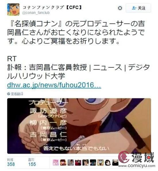 要说这位剧本家也是年纪并不大,今年也只有60岁。果然想要看到被粉丝们称为“有生之年”系列的《柯南》完结真是并不容易啊,到目前为《名侦探柯南》的动画初代制作人吉冈昌仁病逝,年仅56。动画脚本家望月武也因为急性心梗不幸去世...现在主要剧本家古内一成也离开了,柯南的死神威力真是不小啊。