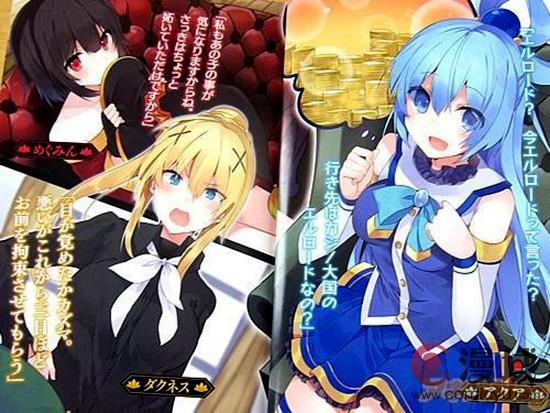 在插图当中,我们既能够看到动画里面出现过的熟悉角色,例如说智障女神、中二魔法少女以及抖M骑士等,也可以欣赏爱丽丝等新角色的表现。当然,如果想知道具体的剧情的话,大家不妨自己购买原版。