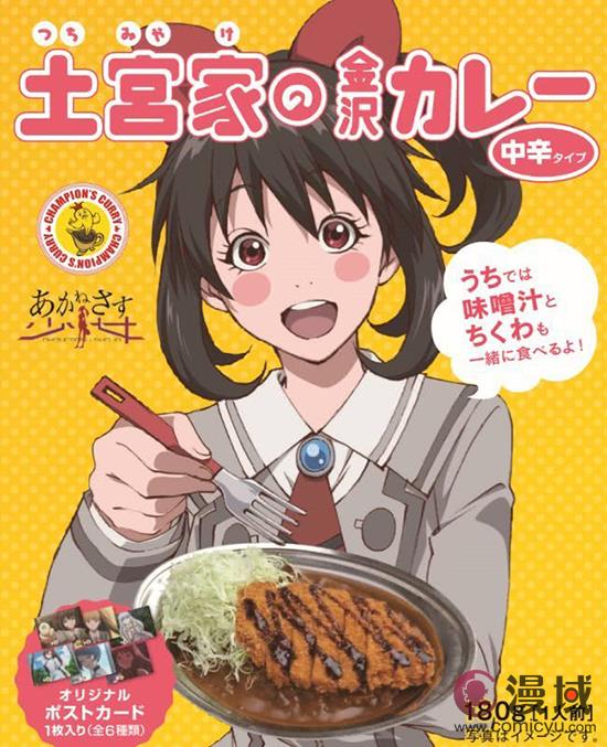 在《茜色少女》电视动画第一话中,主人公土宫明日架品尝到了金泽咖喱。而以此为契机,最近动画官方宣布将与金泽咖喱展开联合活动,并推出联动款咖喱周边商品。购买联动款咖喱还可以获赠一份原创明信片。为了宣传本活动,官方还专门绘制了一幅新插图,图中出现了土宫明日架端着咖喱饭的造型,其中的不锈钢盘也凸显了金泽咖喱的特色。对《茜色少女》的新联动感兴趣的网友们可以关注一下。在动画中,土宫明日架由黑泽朋世配音、灯中优由 Lynn配音、美亚·希尔瓦斯通由东山奈央配音、七濑奈奈由小清水亚美配音、森须蔻萝依由井上麻里奈配音。