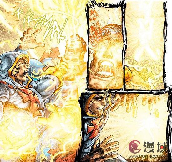 超少女被放出来后,天启星和骷髅王的军队都被打败,世界看似恢复和平,但希曼和DC两边都死了很多英雄,不过众人也收起悲伤决定重新振作,像蝙蝠侠组成了全新的正义联盟,而希曼之前拯救的自杀少女成了新的沙赞,这部分描写得非常棒,彷彿希曼就像超人一样,启发了新世代英雄的诞生!