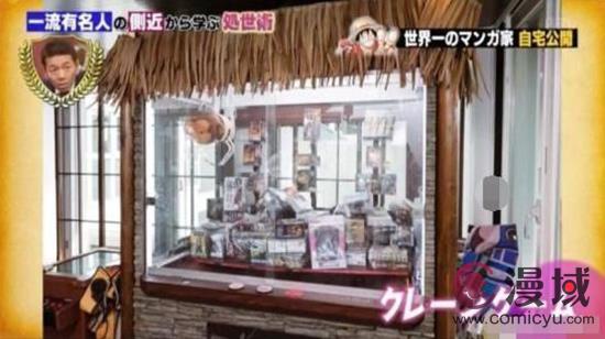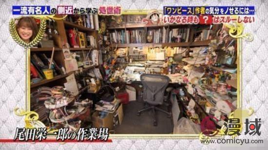 还有就是尾田的工作室,看着工作室的样子,就可以知道创作《海贼王》的工作量了,书架上放满了书,旁边的书架上也摆满了手办、模型。