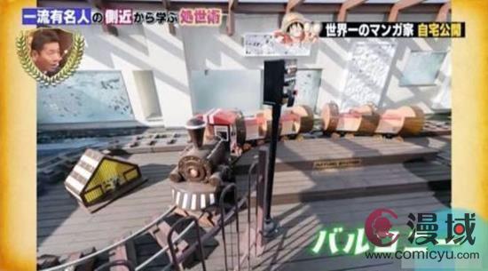 此次尾田荣一郎的豪宅曝光是因为日本的一档综艺节目,节目拍摄组来到了尾田的家里后发现他的房子可以说壕到爆表。首先来看看他的阳台,从面积来看,这根本不能说是阳台啊,简直就是一个小型的游乐场,上面还跑着小火车。