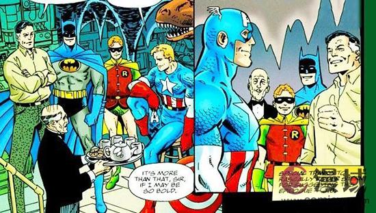 首先从蝙蝠侠和超人的友情中,可以得知蝙蝠侠最好的朋友通常是军人身份,而在漫威宇宙里这样的角色就是美国队长。所以在过去的DC与漫威合作故事里就有安排两人在二战时期互动,剧情讲述红骷髅来到哥谭市跟小丑合作,结果被蝙蝠侠跟美国队长、巴基和罗宾四人联手阻止。