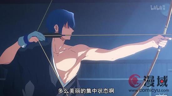 顺着声音找去,那是深山中的一个弓道场,一个裸着半身的男人正摆着标准的射姿,刚刚的弦音就是他射出的。在他的身上,鸣宫奏再度看到了曾经憧憬的弓道,向往的弦音。