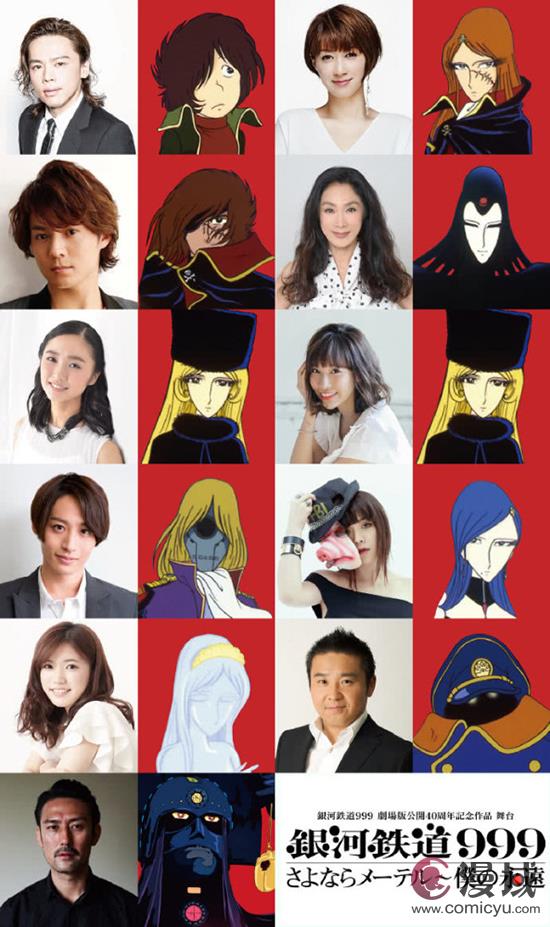 主视觉图以璀璨的银河为背景,集结了铁郎、梅德尔、机械伯爵等主要角色。《银河铁道999》的漫画创作于1977年,电视动画于1978年播出,剧场版于1979年上映,因此2017至2019年都是该作品的40周年。新作舞台剧“银河铁道999 剧场版公开40周年纪念作品 舞台《银河铁道999》再见梅德尔~我的永远”预定于2019年4月20日至29日在东京的明治座公演、2019年5月10日至12日在大阪的梅田艺术剧场主厅公演。本作是去年6月至7月间公演的舞台剧“银河铁道999 40周年纪念作品 舞台《银河铁道999》~GALAXY OPERA~”的续作,石丸さち子负责剧本和作词,落石明憲负责演出,演员阵容如下: