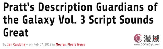 在采访当中克里斯o帕拉特还对剧本做出了一个简单的评价,克里斯o帕拉特称赞这个剧本真的非常棒。在詹姆斯o古恩因为推特事件被迪士尼开除之前,他就已经完成了《银河护卫队3》剧本。他也曾经透露过银河护卫队将在《银河护卫队3》当中完成新旧交替。