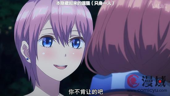 补完史莱姆之后,自然就是轮到五等分。如果说上集除了四叶、三玖,基本人人出尽风头,那么这一集毫无疑问就是一花的专场。整整20分钟全是一花,而且各种攻势迅猛,主动的不像话。为躲避经纪人,怀抱风太郎,一抱再抱。再是成功牵手风太郎同学,还跟风太郎对剧本,以及最后一波杀必死“膝枕”攻击。明显的女主行为,主场攻势一点都不前面两位差。