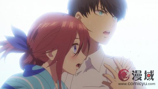 上一集的最后情节也就是一花将风太郎拉到墙边壁咚他,并且还警告风太郎不要暴露她的秘密,可能这个时候连风太郎都不知道一花的秘密是什么吧。然后这个时候一直找三玖的胡子大话也出现了。为了不让胡子大叔找到自己,一花拜托了风太郎一件事,那就是他们两个在墙边抱在一起。刚好风太郎挡住了一花,让胡子大叔没有找到她。而就在胡子大叔的自言自语下,我们也终于对一花的工作有了点了解,那就是和摄影有关的。