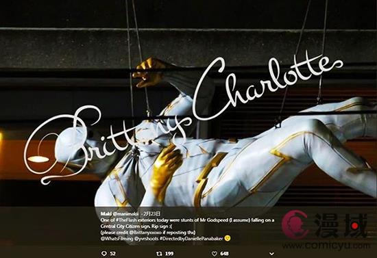 近期一名粉丝莅临《闪电侠》位于加拿大温哥华的片场,看见剧组正在拍摄传闻单集标题为“神速”(Godspeed)的第五季第十八集,并窥见身着“神速”白色经典服装的人物吊钢丝悬在半空中,坠落在挂着中央市市民招牌的大楼面前。