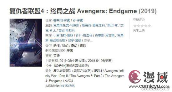 猫眼电影和豆瓣电影的相关页面信息显示,《复仇者联盟4:终局之战》可能会在今年5月在国内上映,具体日期未定。更有传闻称《复仇者联盟4:终局之战》内地定档5月3日。而根据新京报报道,迪士尼方面否认了这一消息。