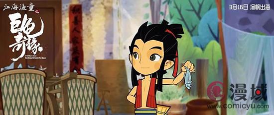 影片开篇30分钟,运用了插叙的讲述,使用了多种镜头语言,无论在情绪的积淀还是细节的铺陈方面,都是比较到位的,甚至让人感受到一种国产动画难得的精致。比如在渔村集市一处,几个次要人物各说了一句话,就让其性格特征突显。一个魁梧的渔民的妻子在送丈夫出海时说,别把饭都给分了,你自己也留点。说明了这个渔民的慷慨与无私。另一个抱着孩子的母亲看到孩子喜欢风车时说,吹吹不花钱。说明了这位母亲的精打细算。更可贵的是,无论是酒店掌柜和伙计的戏谑,还是街头巷尾街坊邻里的言谈,影片后面还多有情节呼应,看出了影片的设计感。