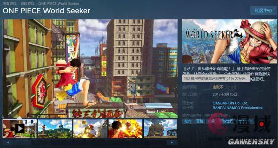 由万代南梦宫开发的动作冒险游戏《海贼王:寻秘世界》已在3月15日登陆Steam,但目前这款游戏的口碑一般,玩家的评价为“褒贬不一”,好评率为61%。