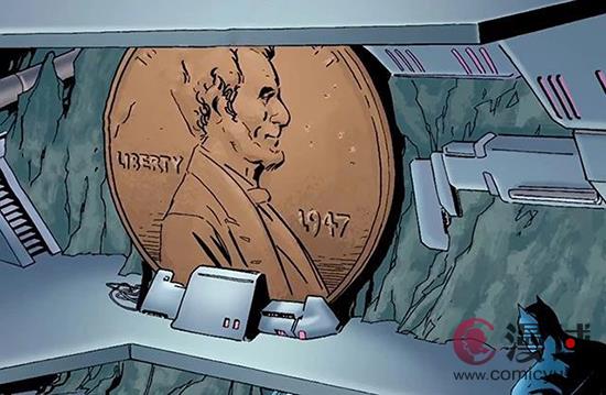 巨型硬币的起源可以追溯到1947年《世界最佳拍档》第30期,在这本书中,一个名叫乔·科因的恶棍,代号美分掠夺者,犯下了一系列以美分硬币为主题的罪行。这个巨型硬币是哥谭市硬币展上的一件展览品,也是美分掠夺者的目标。打败了他之后,蝙蝠侠就把这个硬币运回蝙蝠洞收藏。