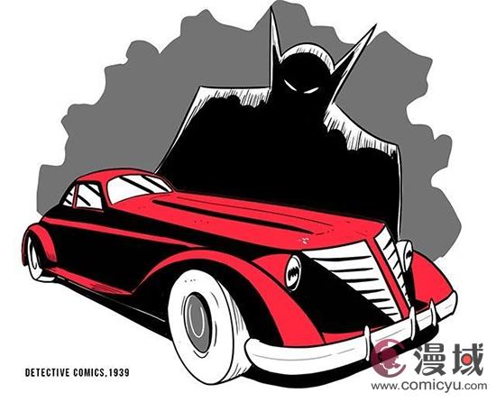 1939年5月,和蝙蝠侠一起亮相于《侦探漫画》里的蝙蝠车还是一台未脱青涩(其实是红色)的普通小汽车。随着漫画的剧情不断演进,蝙蝠车也逐渐被加上带有蝙蝠风格的各种装饰(比如车头和车尾的尾翼),车身烤漆改走神秘高贵的蓝黑色调。1941年这台善变的小汽车才被冠上正式的名号:蝙蝠车。