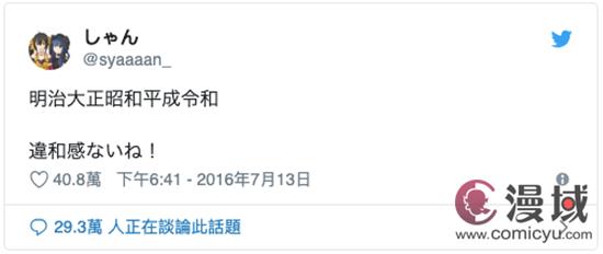 而日本网友“しゃん ”在7月13日NHK爆料天皇将退位当天,就在自己的推特上发文:“明治大正昭和平成令和、违和感ないね!(没有违和感吧)”,这段当时没有人注意的发文,今日被网友翻出来后震惊了许多人,除了准确命中新年号是“令和”外,令人毛骨悚然的是,文章的发文时间点是清晨3点41分,NHK则是在晚间新闻爆料天皇退位,“ しゃん ”的消息灵通程度竟快过国营媒体。