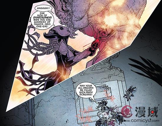 金碧辉煌的仙宫,如今只剩下残骸,更失去了以往的战力,甚至连海姆达尔的眼睛也被蒙蔽,所以无法预知这次的危机,导致魔雷基趁机席卷了十界,其中托尔的敌人还自愿加入敌党旗下。因此,落魄的奥丁就这样轻而易举被黑暗精灵刺客拿下!