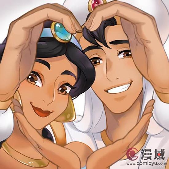 茉莉公主与阿拉丁还真是很有夫妻相呢,如果没看过这部动画,我都以为这位漫画师画的是两兄妹呢。