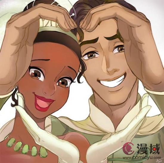 说真的迪士尼动画公司还真是喜欢用人与兽的这种模式组cp呢,这两位是动画《青蛙与公主》中的两位主角,可能有不少人没看过,因为跟其她几位公主比起来好像知名度不是太高,剧情方面跟青蛙王子还是有些相似的,但是这里的王子和黑人姑娘都变成了青蛙,相当有意思。