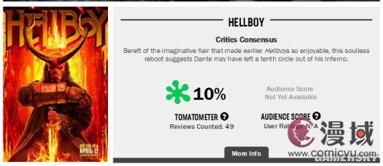 新版《地狱男爵》口碑今日已解禁,惨不忍睹,早先我们已经报道了电影在Metacritic上的媒体均分仅为30+,而电影的烂番茄新鲜度同样不忍直视,截至发稿前,新鲜度仅为10%。
