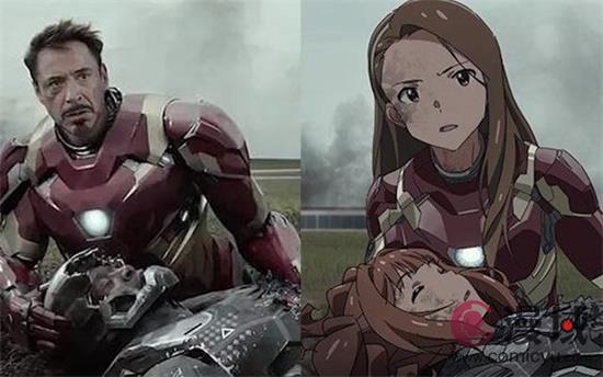 第一个要看的是复仇者联盟的老大钢铁侠和他的小弟战争机器,看画面应该是美队三内战时期,战争机器被猎鹰干趴下后,钢铁侠抱住他的镜头。变成女孩子后,突然就有一种橘里橘气的感觉,长发钢铁侠抱着双马尾的战争机器,这个画面感觉真是美啊!