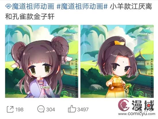 不过,这次Q版的师姐公布之后,评论区却遭到了吐槽,理由就是师姐江厌离的羊角丸子头引发的,粉丝们觉得这次的画师太过敷衍,把动漫里善良可爱的师姐画崩了。