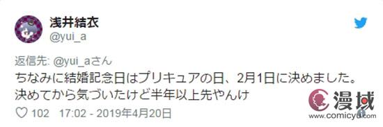 随后她还表示“顺带一提,结婚纪念日决定在‘光之美少女之日’的2月1日了。不过决定了之后才注意到,还要半年以上的时间啊”