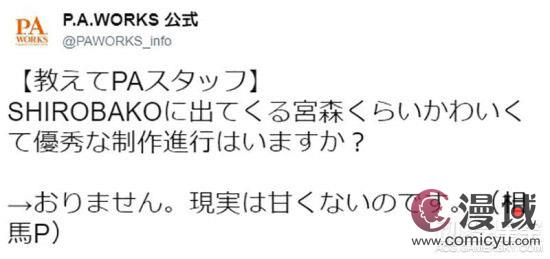 可是就连制作《SHIROBAKO》的动画公司P.A.WORKS最近被问到业界问题也说出:“世上有像宫森葵那样可爱又优秀的制作进行吗?没有,现实才没这么天真。”这样的话。希望支持的事件能够引起大家重视,改变下动画制作者们的现状吧。