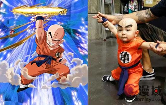动漫中的克林绝对是一位非常有趣的人,和龟仙人一样看起来挺正经的,但是却异常的好色,克林一直喜欢18号,不过在很多人看来,克林和18号的差距实在有些大,两人在一起很不搭配,可是最终他们两人还是在一起了,这点倒是让不少粉丝感到无语。这位COS克林的外国小朋友大家觉不觉他超可爱的,不过还原度还真是高呢,估计家长也是龙珠的狂热粉丝,要不然也不会能够将自己孩子装扮的如此还原。