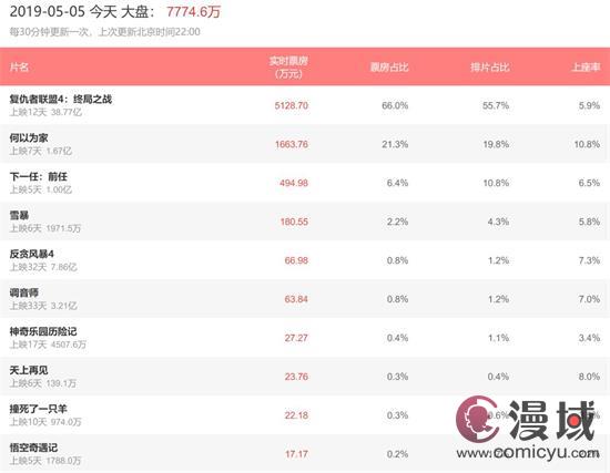 数据来源猫眼专业版,截止至2019年5月5日22:00