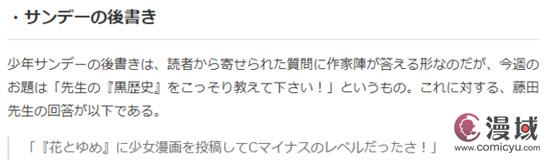 日本著名漫画家藤田和日郎近日在杂志上被问到自己有没有什么黑历史,坦然曝出当年曾经创作少女漫画却未被接受,让网友惊叹不已,看来幸好当年没走上粉色少女之路,如今的硬汉名作「潮与虎」、「傀儡马戏团」等估计就不存在了。