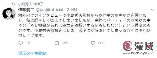 最近有报道称“伊藤润二在和小岛秀夫讨论一款新的恐怖游戏”,伊藤润二在自己的推特澄清了这一消息。他表示实际上只有“如果有机会的话,或许可以一起合作”这种程度,而非既成事实。