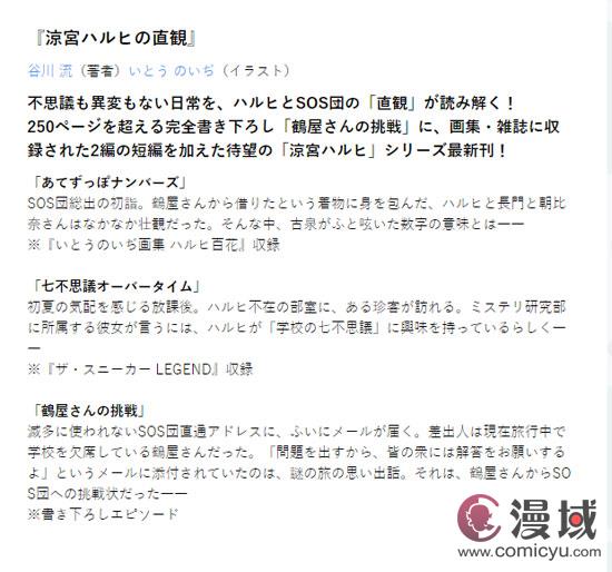 新作《凉宫春日的直观》目前公开了3个故事概要: