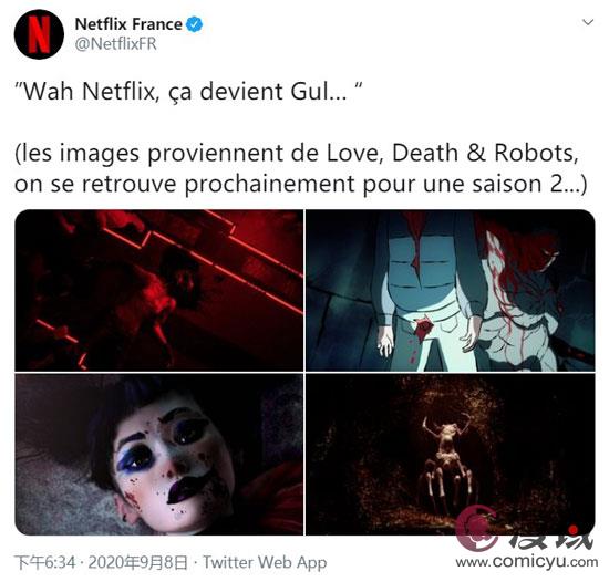 9月9日,Netflix(法国)官方推特公布的最新消息称,此前已经续订第二季的大热动画作品「爱,死亡与机器人」就要上线了!