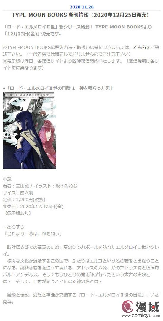 小说「君主·埃尔梅罗二世事件簿」的续作「君主·埃尔梅罗二世的冒险」第一卷「吞噬神明的男人」将于12月25日发售。